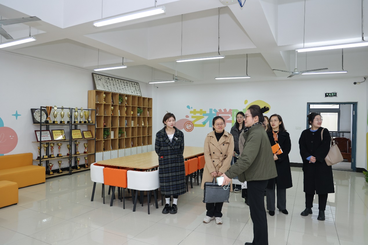 座谈会后,高晓宇一行参观了我校“红石榴筑梦空间”创新创业基地、艺术学院学生会办公室等团学活动阵地。