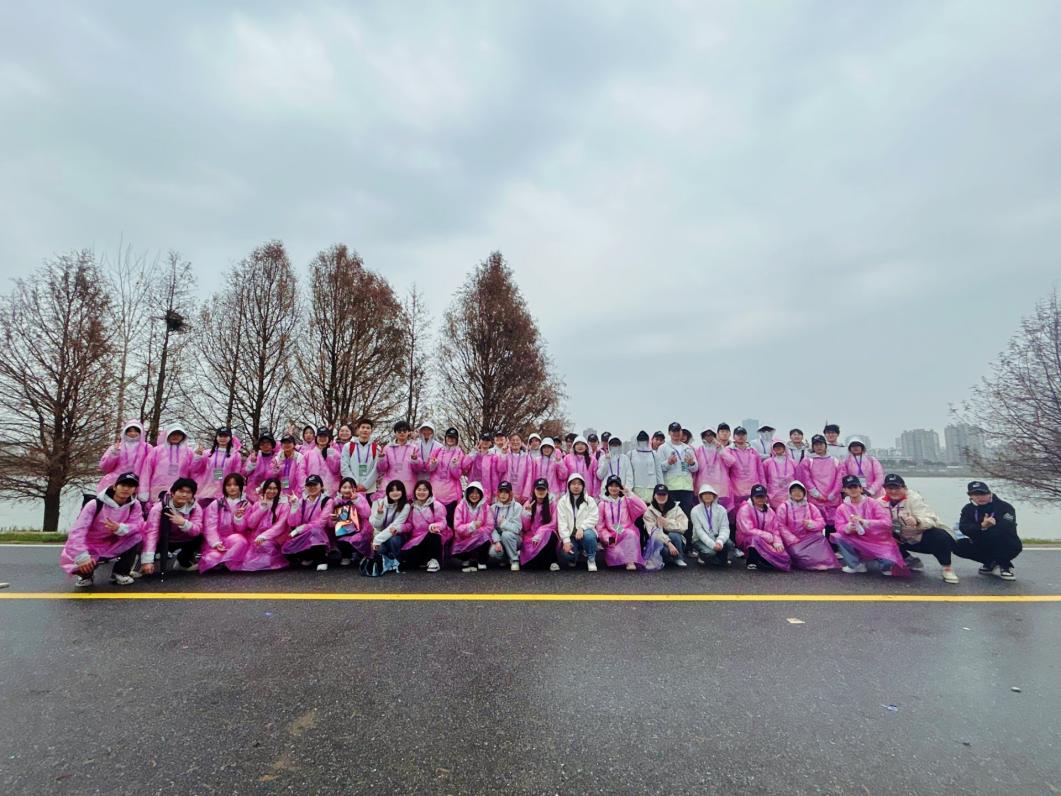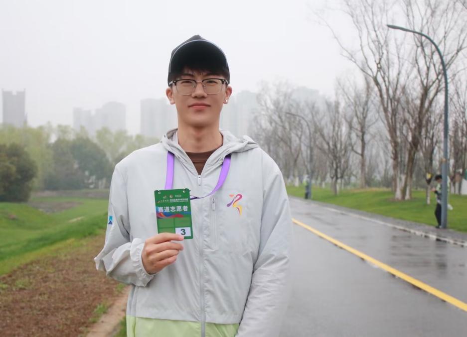 赛事当日凌晨5点,志愿者们抵达江心洲,在初春微凉的细雨中快速投入到赛事准备工作:赛道补给点、返程计时点、智慧录影点....志愿者们在不同岗位保持微笑、加油助威、细心服务,为赛事进行提供有力保障。