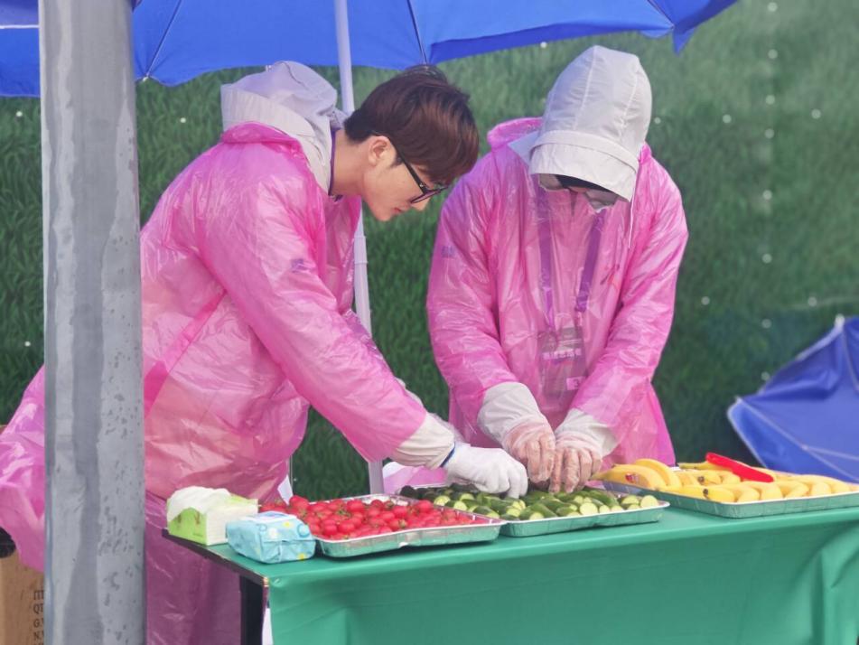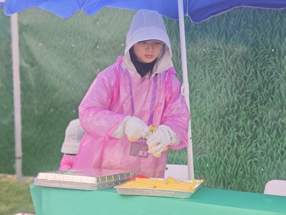 料峭春寒下,赛道补给点的13张桌子依次排开,同学们顾不上手凉脚湿,倒冷水、投水果、浸泡清洗、切段装盘一气呵成,水果切段装在盘中有序摆放,便于争分夺秒的运动员快速补给,大伙儿一站就是3小时。看似重复机械的工作实际上并不简单。一上午下来,建筑工程学院的任月浑身酸痛,弯腰起身不知搬了多少水果和桶装水。“只要运动员能够满意,什么付出都是值得的!”她一脸真诚地说。