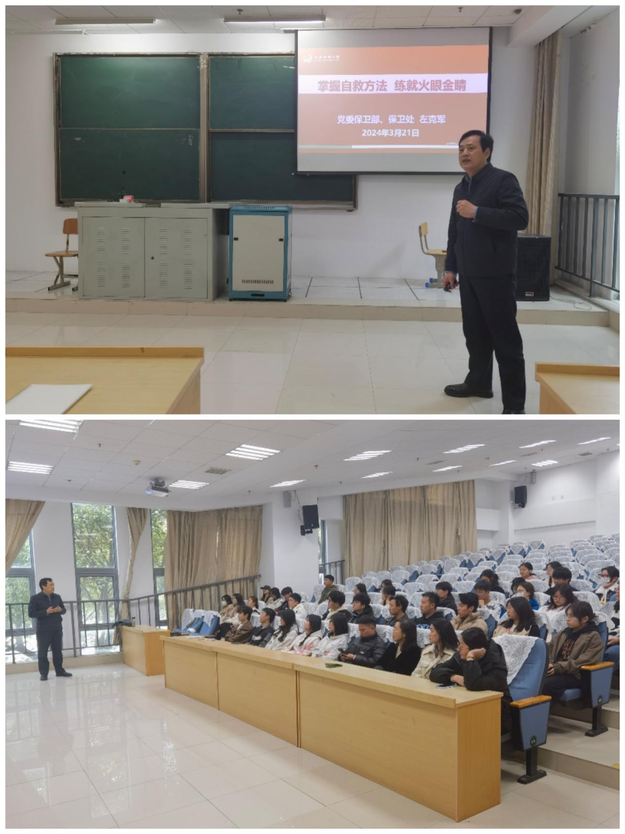 为进一步强化我校团学骨干校园安全意识,提升自救自护、应急处置能力,3月21日中午,校团委联合保卫处在应天校区教学楼203教室组织开展校园安全知识讲座。培训邀请保卫处处长左克军主讲,并现场进行演示。我校校学生会成员、学生社团负责人及团委全体人员参加学习。