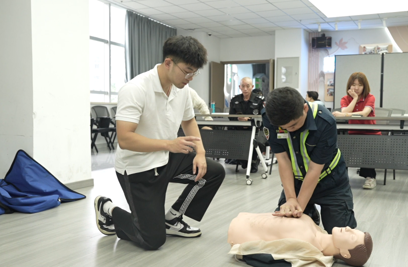 “胸外按压每分钟要达到100-120次,就像《最炫民族风》的节奏......”近日,在南京市建邺区蓓蕾社区党群服务中心,一场别开生面的生命守护课程正在展开。近日,我校青年志愿者联合鼓楼区红十字会、建邺区社会工作部将专业急救培训送进社区,为居民、外卖骑手、社工等群体构筑生命安全屏障。