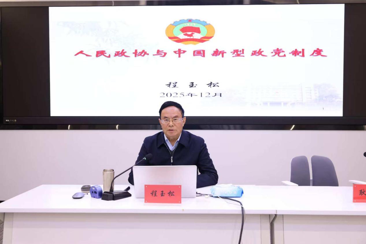 程玉松曾担任县委办公室主任,省委办公厅副处长、处长,省委农村工作领导小组办公室副主任,省政协副秘书长、研究室主任。他以“人民政协与中国新型政党制度”为题,结合自身深厚的理论素养和丰富的实践经验,系统梳理了中国新型政党制度的形成和发展,深刻分析了中国新型政党制度具有的鲜明特色和显著优势,详细阐述了人民政协是实行新型政党制度的重要政治形式和组织形式,将理论融入历史脉络与现实实践,以生动的案例和鲜活的语言,为师生们呈现了一堂既具理论深度又富有实践温度的思政课。