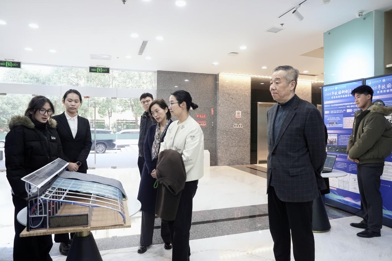 活动当天,杭祝洪、卜路等领导参观了我校优秀科创作品并与师生团队亲切交流。