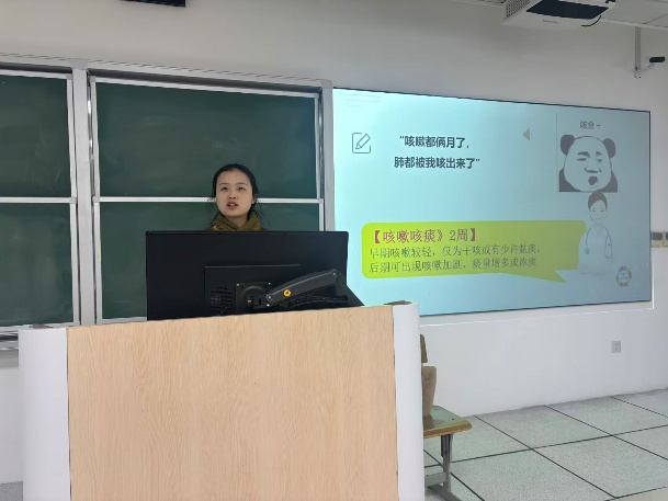 讲座邀请到了南京市疾控中心慢性传染病防制科王雪晴医师,她讲解了肺结核的病因、传播途径、常见症状、规范治疗及预防措施等核心知识,着重强调了早期发现、规范诊疗的重要性以及国家相关的免费治疗政策。