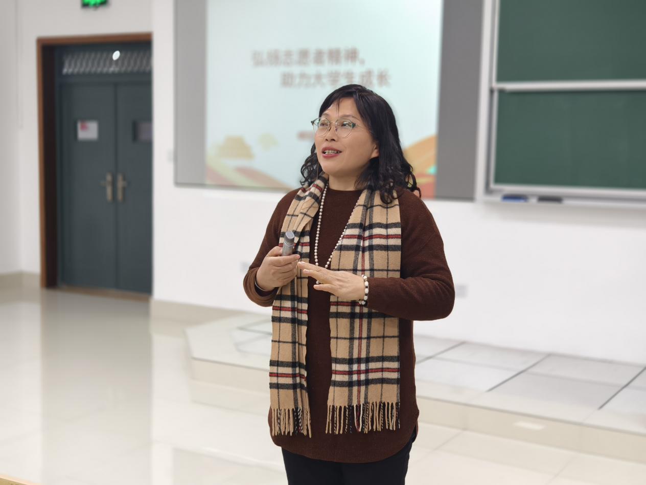 来自马克思主义学院的张玉兰老师,为志愿者们带来一次生动的主题活动,她以“弘扬志愿者精神,助力大学生成长”为题,从理论与实践相结合的角度,深入阐释了志愿者精神的中华文化底蕴、社会主义核心价值、在实现中国式现代化进程中的时代意义。新时代的志愿者精神,不仅在于无私付出,更在于将自觉服务他人、奉献社会与坚定理想信念、践行初心使命紧密相连。