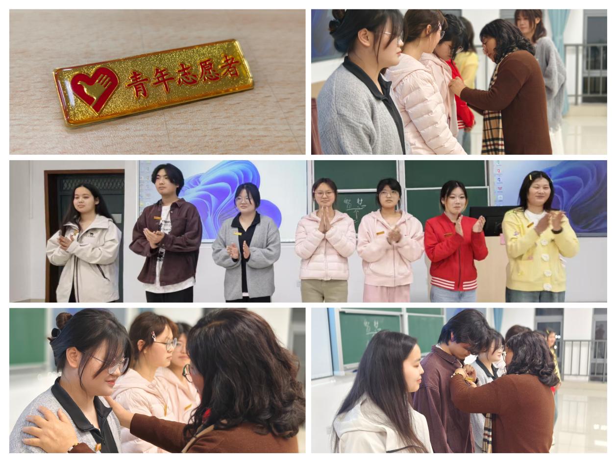志愿服务是青春与责任的相遇,是理想与实践的交融。在热烈的氛围中,张玉兰老师为优秀志愿者代表们佩戴志愿者徽章。闪闪发光的徽章,是一份荣誉的象征,更是一份责任的托付。优秀志愿者代表季晨辉说:“这枚徽章将时刻提醒自己铭记志愿初心,以严格的标准要求自己,带动更多同学加入到志愿服务队伍中,用实际行动书写新时代的雷锋故事”。